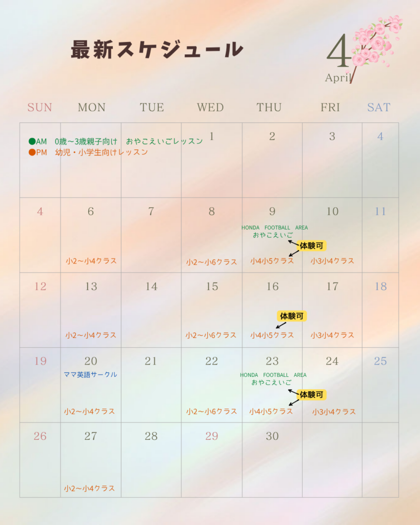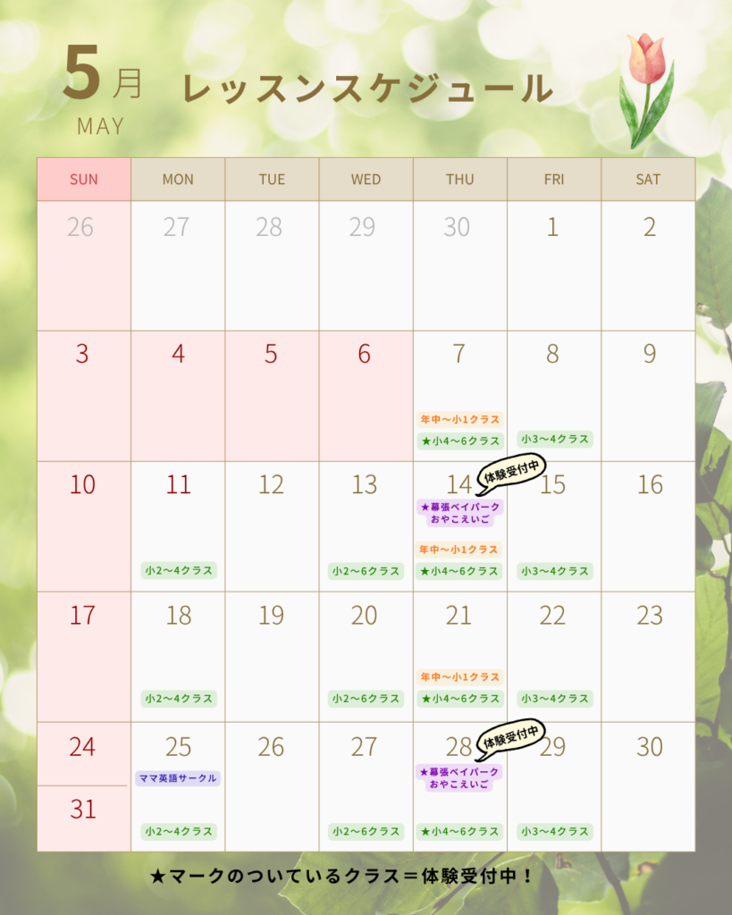 そんな、「なんだか楽しい♪」が千葉・幕張に広がるように願い、英語レッスンをお届けしています。