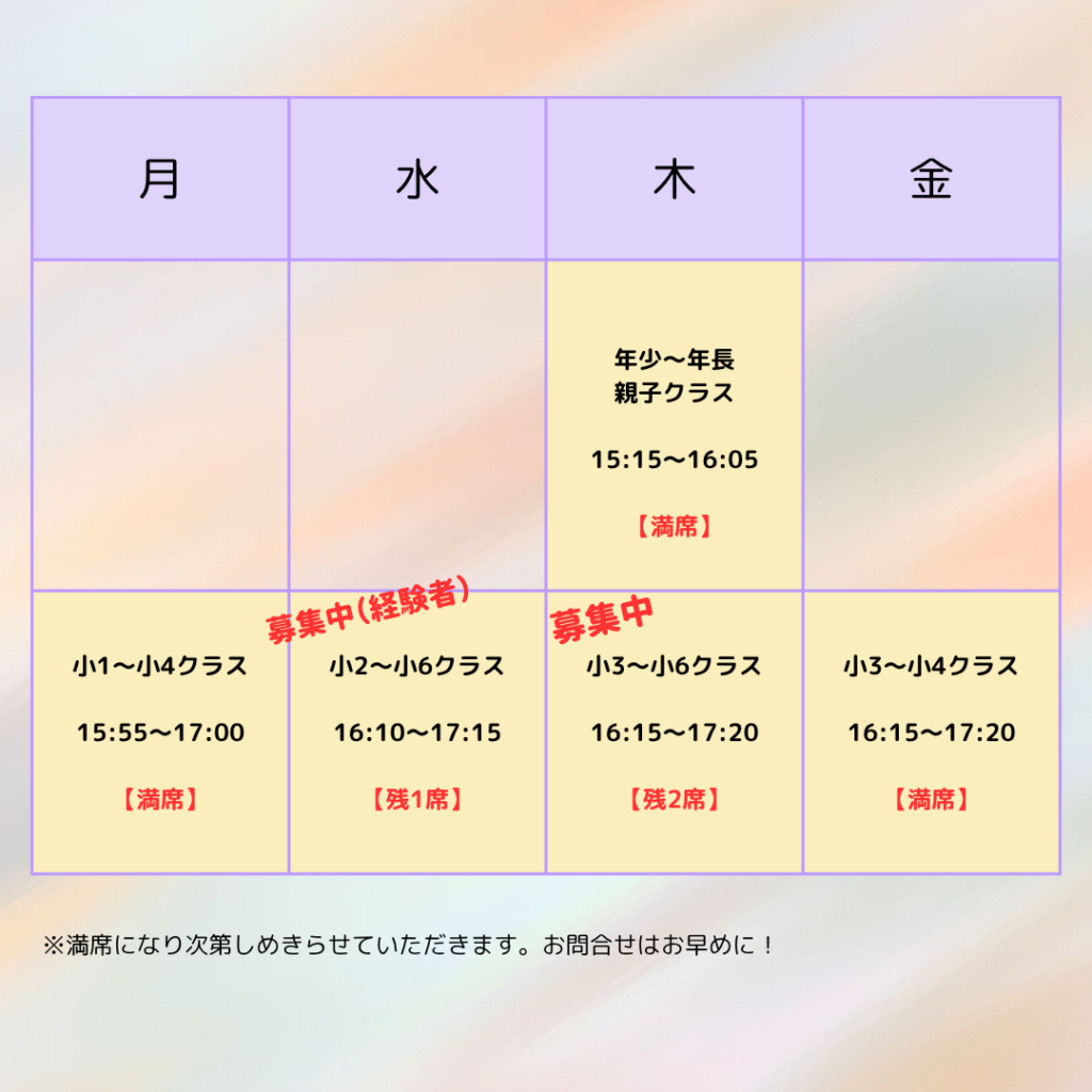 ◆小学生クラス:2026年4月から小学1年生~6年生